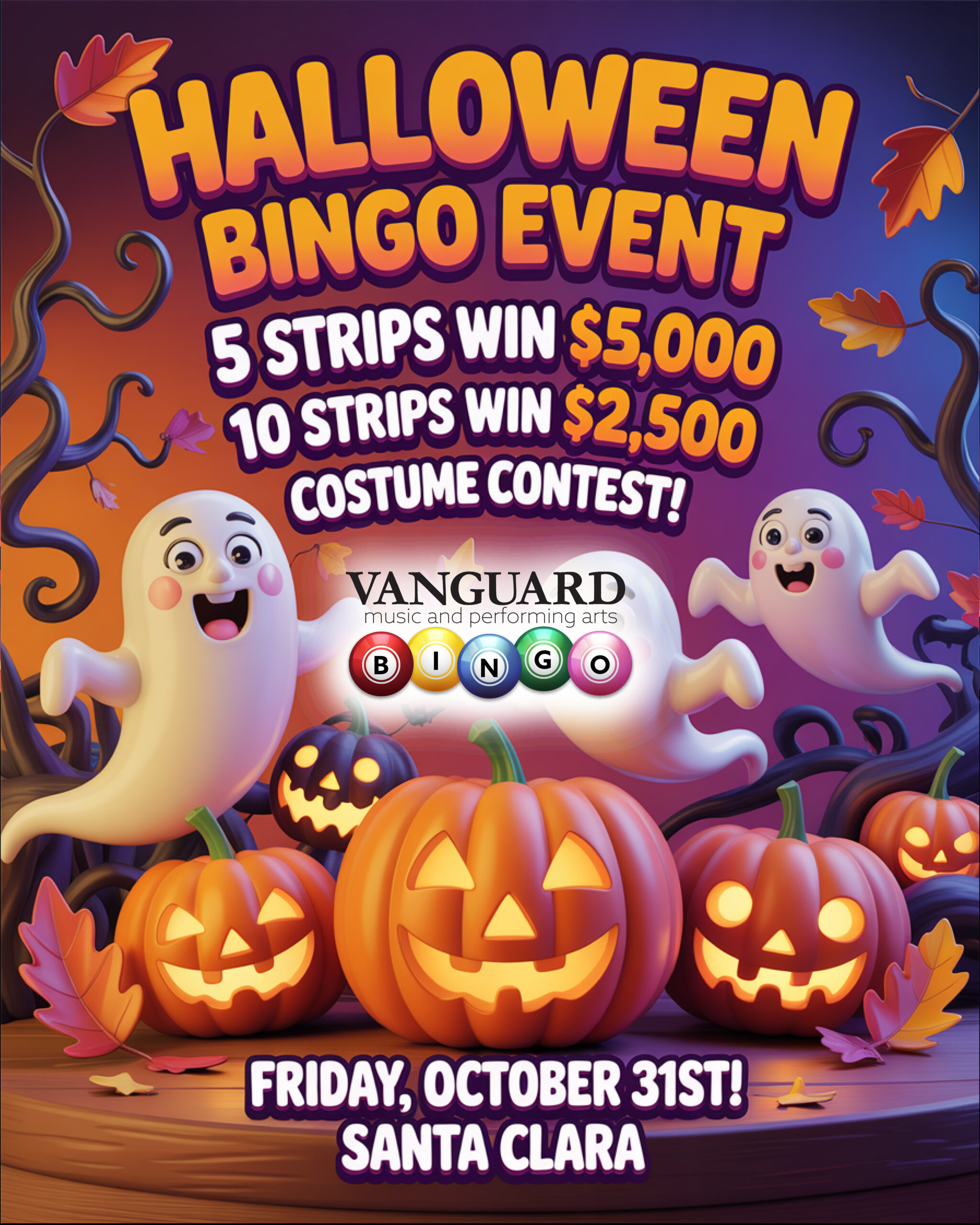 Join us for a spooktacular night of fun, prizes, and costumes at Vanguard Bingo – Santa Clara on Friday, October 31st! 👻
