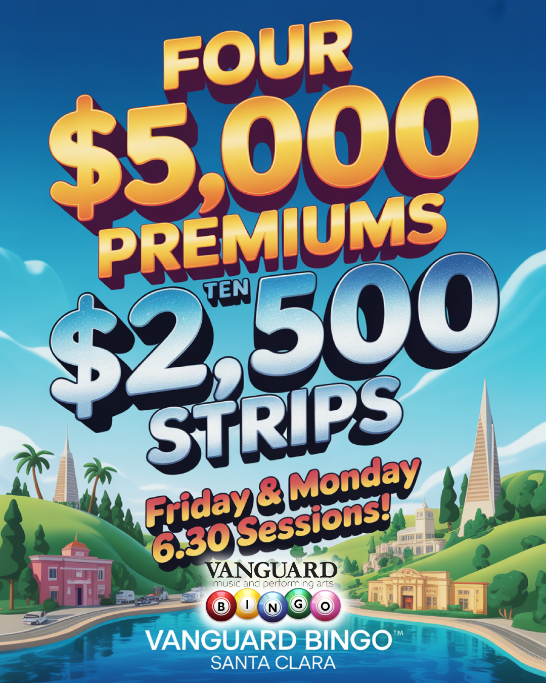 Join us Friday or Monday night at Vanguard Bingo Santa Clara.