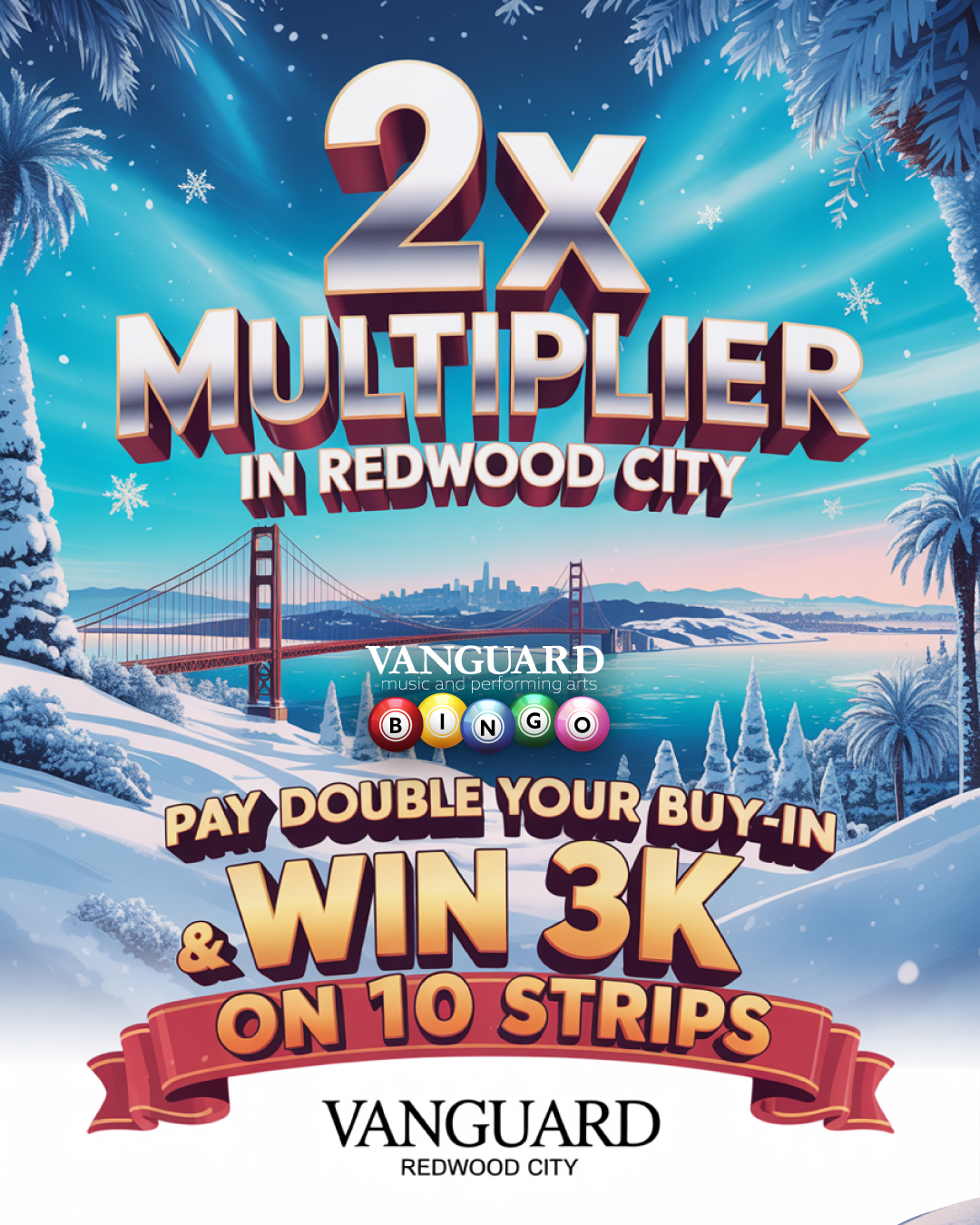 All month long at Vanguard Bingo – Redwood City, you can Purchase a special buy-In that gives you a 2X multiplier for Double the Payouts!