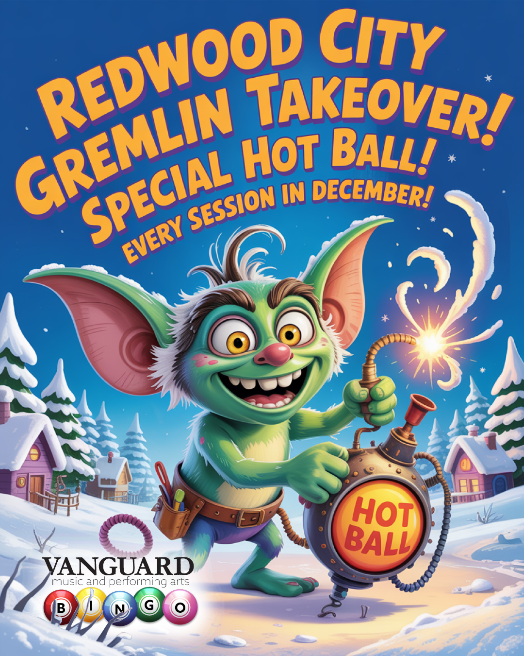All December long, the Hot Ball Gremlin is taking over Vanguard Bingo Redwood City!